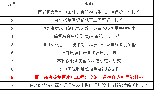“面向高海拔地区水电工程建设的自调控自适应智能材料”入选水电和新能源领域2025年10大前沿科学问题
