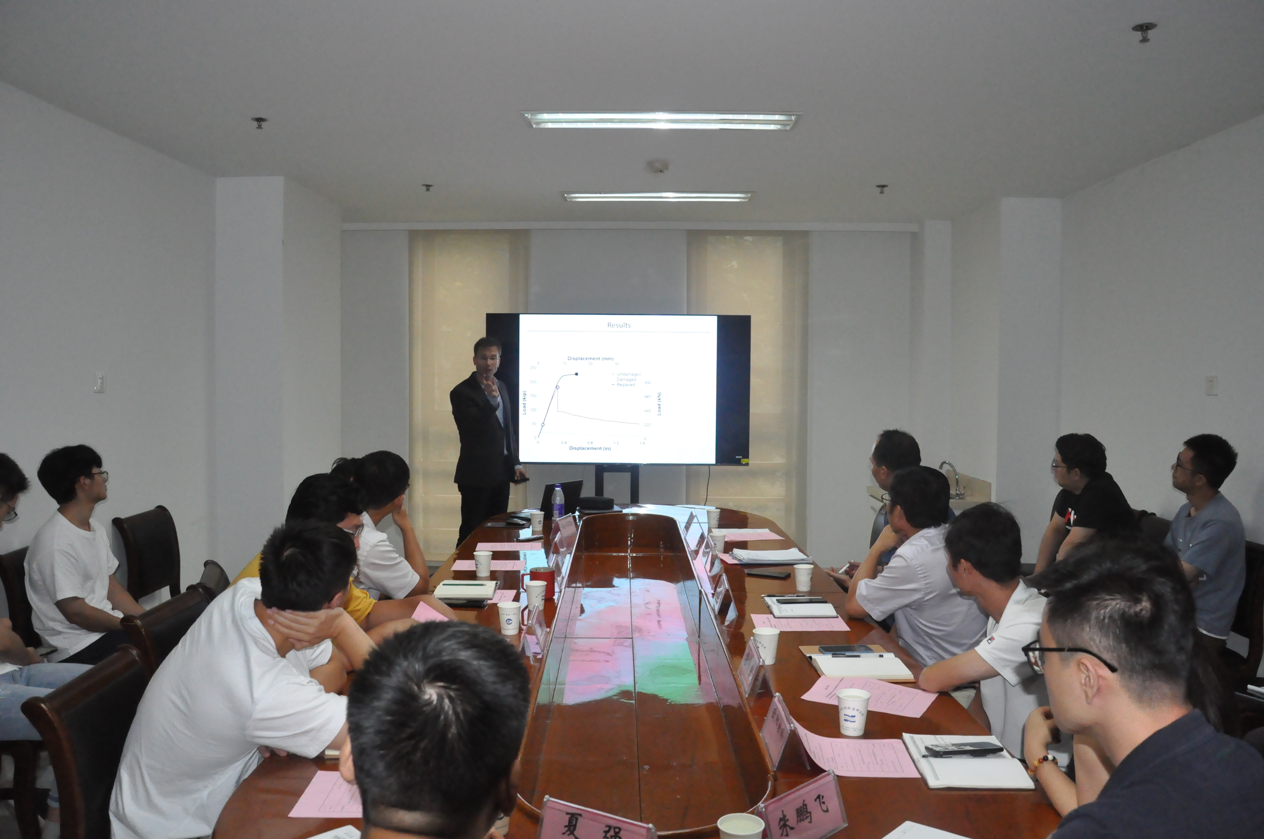 会上,Kay Wille教授做了题为“混凝土材料在美国基础设施建设中的应用现状与挑战”的报告。讲解了美国基础设施建设中混凝土现阶段应用现状,同时结合自身最新研究成果,详细介绍了UHPC在钢结构加固中应用的关键点与主要影响因素,同时结合生动详实的工程案例,系统介绍了UHPC加固钢结构的力学性能与耐腐蚀性能,最后对现阶段混凝土在美国基础设施建设中面临的挑战从多角度进行了系统总结。东南大学钟锐副教授做了“超高性能混凝土抗冲击行为及性能提升机制”的报告,钟锐副教授从材料的组成、配制技术、性能测试方法、数值模拟等角度,详细介绍了多种高韧性材料的力学性能与抗冲击性能间的辩证关系。讲座结束后,参会人员与两位教授就相关问题进行了深入讨论。