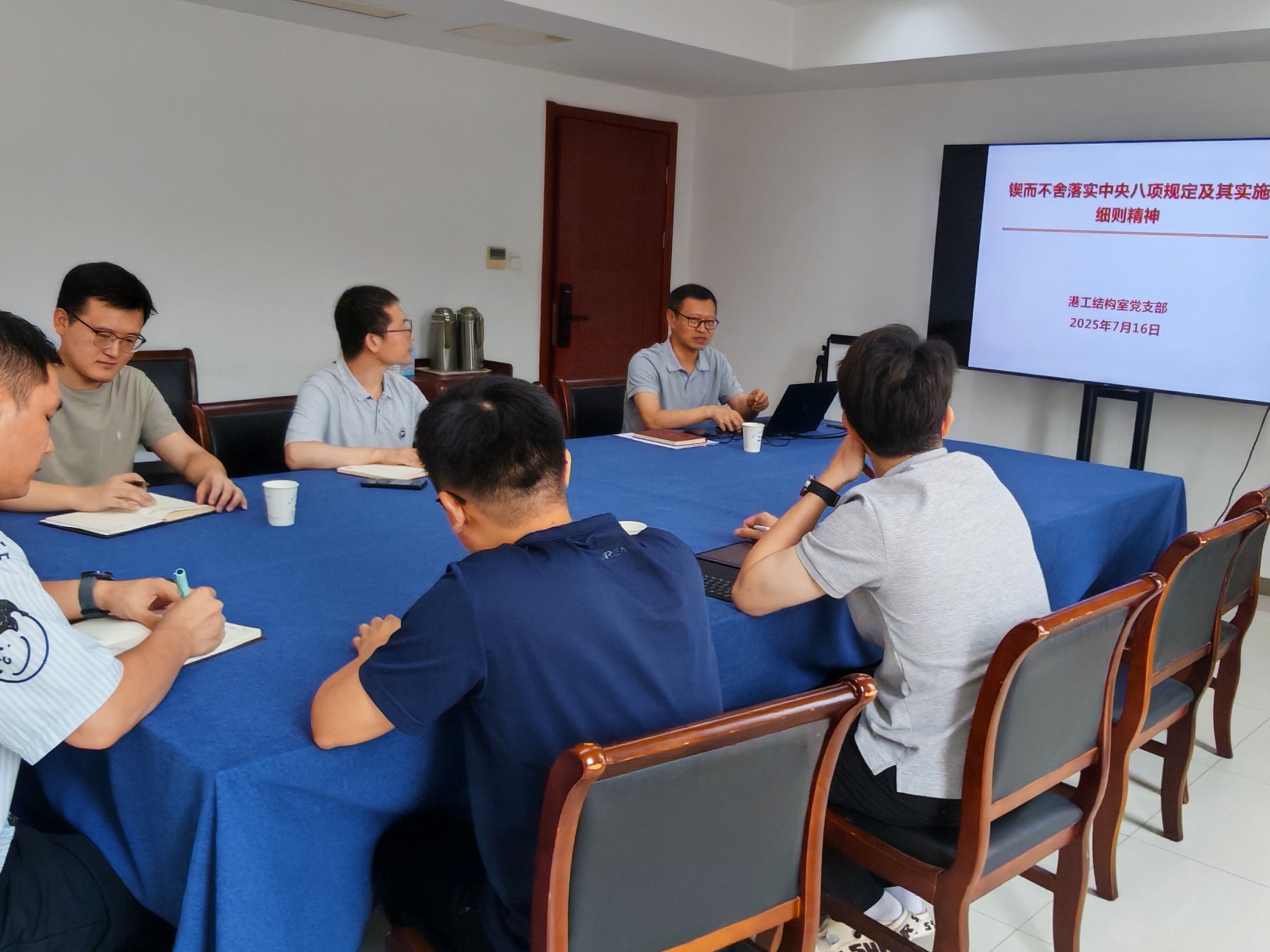 7月16日,为持续加强支部党员作风建设,港工结构室党支部召开党员大会,以“锲而不舍落实中央八项规定精神”为主题,开展专题学习暨主题党日活动。支部书记王承强主持活动并讲授专题党课。