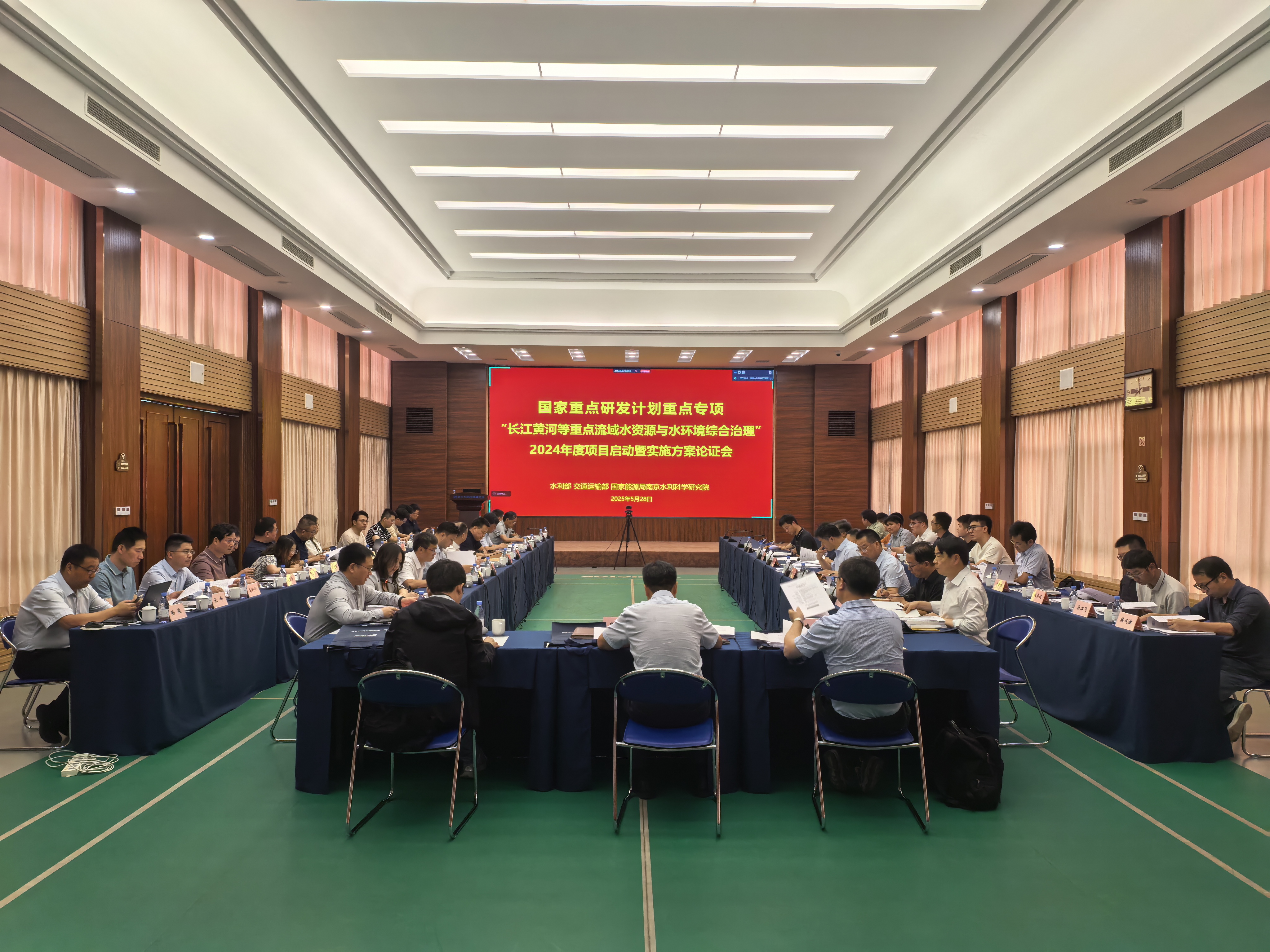 2025年5月28日,我院在南京组织召开了“十四五”国家重点研发计划“长江黄河等重点流域水资源与水环境综合治理”重点专项揭榜挂帅项目“复杂筑坝条件下沥青混凝土心墙坝渗漏诊断与处置关键技术研发(2024YFC3214900)”与重点项目“堤坝工程蚁穴隐患探查技术与装备研发(2024YFC3211500)”联合启动暨实施方案论证会。会议邀请了水利部国际合作与科技司、运行管理司与中国21世纪议程管理中心等有关负责同志到会指导。项目牵头单位、课题承担及协作单位的代表和咨询专家共60余人参加了会议。